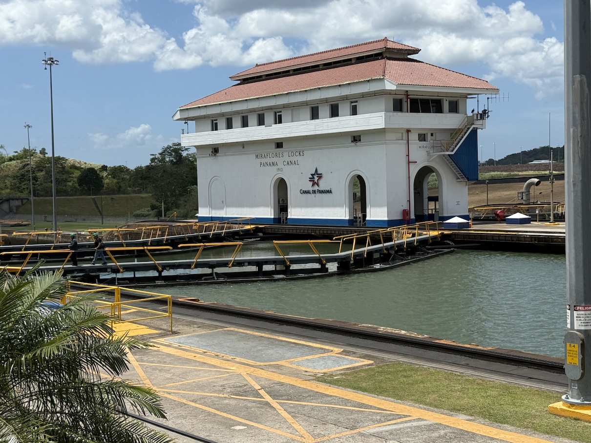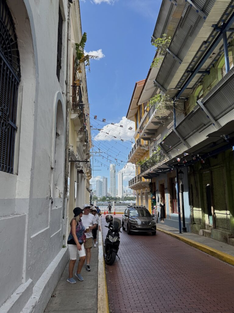 A bit of a pointless tour to the Miraflores Lock since there were no ships going through. We saw a good IMAX movie, but I suppose we could have watched the equivalent on YouTube. Then we went back to the BEC Museum, which is basically a visitor center trying to sell coffee, chocolate, and beer. They tried to make an interesting visitor experience out of the second-floor museum. It wasn’t really successful, but it was an interesting attempt. Then we took a torturous walk about four blocks in 91° heat and equivalent humidity, uphill, for no obvious purpose, but I did get a few decent snapshots.